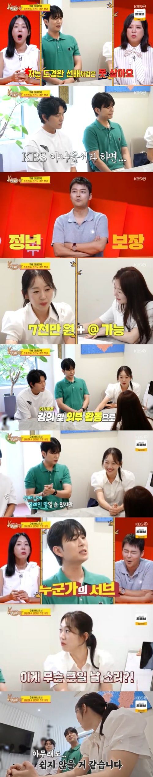 문제는 지난 24일 방송에서 비롯됐다. 이날 방송에서는 엄지인 아나운서가 남현종, 김진웅 아나운서와 함께 결혼 상담을 받는 모습이 담겼다. 이 과정에서 김진웅 아나운서는 “나는 도경완 선배처럼 못 산다. 정말 선배에게 결례가 될 수 있지만 누군가의 서브로는 못 산다”고 말해 파문을 일으켰다.