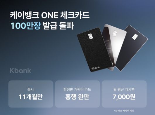 케이뱅크(행장 최우형)가 ONE 체크카드가 출시 11개월 만에 100만장을 돌파했다.