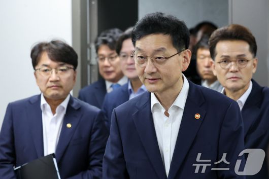 윤창렬 국무조정실장이 15일 오전 서울 여의도 국회의원회관에서 열린 폭염 대책 당정 간담회에 입장하고 있다. 2025.7.15/뉴스1 ⓒ News1 안은나 기자 |