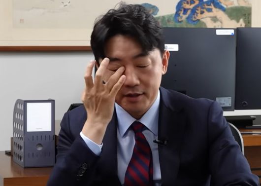 피곤한 듯 눈을 비비는 강훈식 대통령비서실장. 유튜브 |