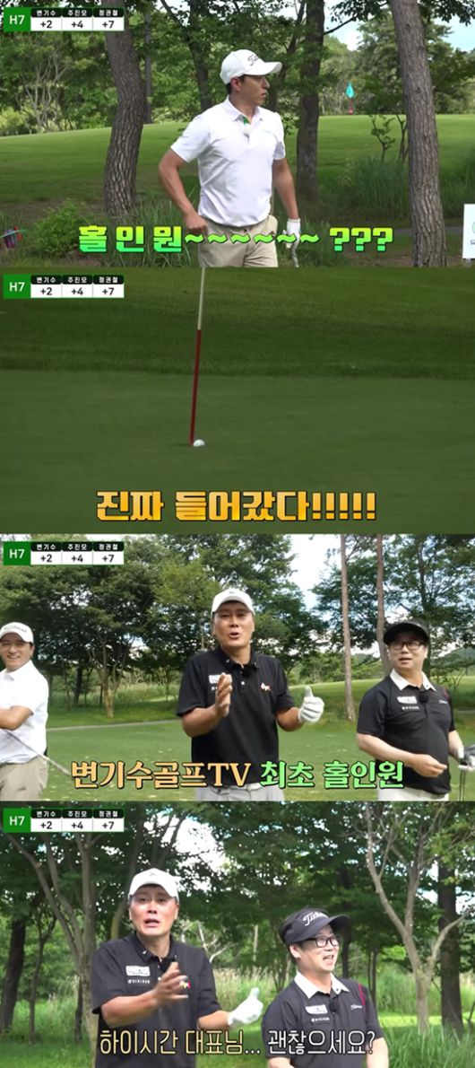 이어 변기수는 "변기수 TV 5년 4개월 만에 처음으로 홀인원이 나왔다. 더 놀라운 건 홀인원 상품이 걸린 첫날에"라며 흥분한 모습을 보였다.