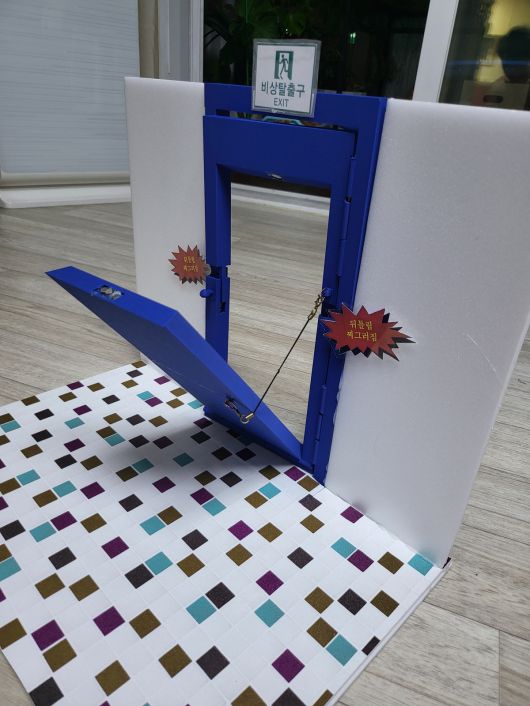 이 작품의 목적은 지진으로 건물이 뒤틀리면서 현관문·방화문 또는 문틀이 찌그러졌을 때, 이로 인해 실외 탈출이 막히는 상황을 방지하는 것이다.