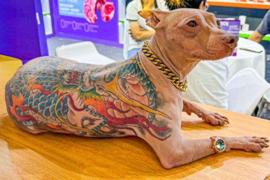 타투이스트는 처음엔 개 주인의 문신 요청을 거절했지만, 견주가 이 품종은 통증에 둔감하다고 주장하며 여러 차례 요청해 결국 동물병원에서 시술하게 됐다고 밝혔다.