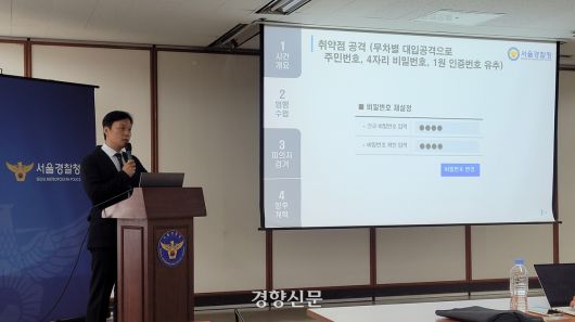 오규식 서울경찰청 사이버수사2대장이 28일 서울경찰청에서 ‘알뜰폰 무단개통 등 비대면 인증 무력화 사건’ 수사 결과 브리핑을 하고 있다. 백민정 기자