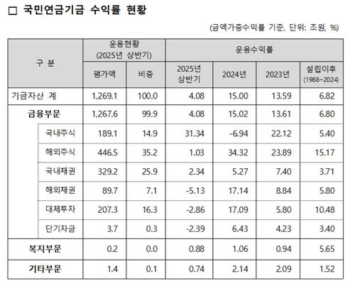 상반기 기금 운용 수익률은 4.08%(금액가중수익률)로 잠정 집계됐다.