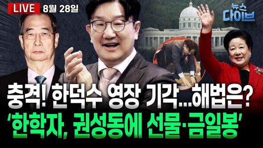 출연: 노영희 변호사, 박진영 정치비평가, 장윤미 변호사, 황준범 한겨레 논설위원, 진행: 고현준. ‘내란방조’ 혐의 한덕수 구속 영장 기각...“다툴 여지 있어”? / 권성동 ‘현금 박스’ 의혹...통일교 금일봉 정황 포착 / 김충식 창고 문건 속 총선 개입·국정농단...노상원 계엄 문건과 맞닿아 있다? / 독립기념관 사유화? 김형석 관장, 예배·친목행사 동원 / 장동혁, ‘윤석열 면회’ 딜레마...숙청 카드 휘두르나. 오늘 (8월 28일) 뉴스 다이브 많은 시청바랍니다. 제작: 뉴스영상부
