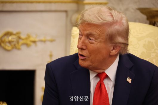 도널드 트럼프 미국 대통령이 지난 25일(현지시간) 미국 워싱턴DC 백악관 오벌 오피스에서 이재명 대통령과 한미 정상회담을 하고 있다. 김창길 기자 |