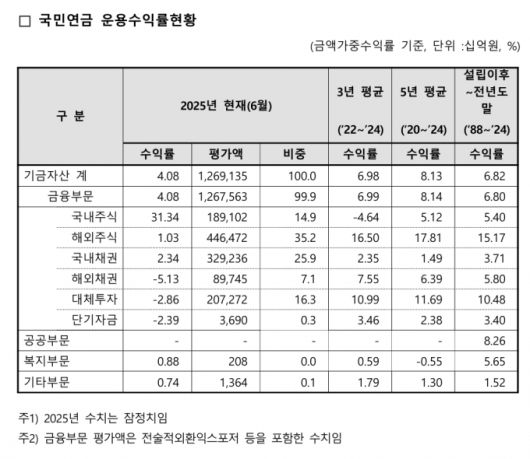 국민연금 2025년 상반기 기금 운용수익률 공시