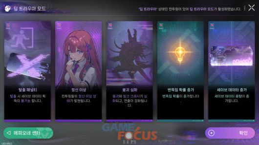 어두운 분위기를 보여주기 위한 시스템적 장치가 있는가? 하드코어 모드가 있다. 기본적으로 모바일게임 플레이를 지원하기 위해 어느정도 게임 디자인이 라이트하고 대중적이긴 하지만 정말로 제대로 즐기는 유저들을 위한 콘텐츠가 필요했고 그것이 하드코어 모드라고 할 수 있다. 이 콘텐츠는 오롯이 도전을 위한 콘텐츠로 보상은 엄청 크지 않지만 엔드게임 콘텐츠에서 소소하게 도움이 될 수 있도록 디자인하고 있다.