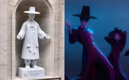 최근 넷플릭스 애니메이션 영화 ‘케이팝 데몬 헌터스(케데헌)’의 세계적인 인기 속에 바티칸 성베드로대성당에 세워진 성(聖) 김대건 안드레아(1821~1846) 신부 성상이 새삼 국내외 네티즌들의 주목을 받고 있다. 갓을 쓴 김 신부의 성상이 이 애니메이션에 등장하는 ‘사자 보이즈’를 닮았다는 것. 특히 ‘사자 보이즈’는 극 중 사람들의 영혼을 빼앗는 악령의 수하여서 네티즌들의 웃음을 자아내고 있다.
