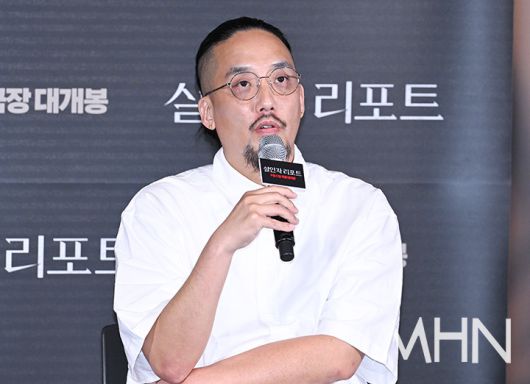 (MHN 이현지 기자) 조영준 감독이 28일 오후 서울 용산구 CGV용산아이파크몰에서 진행된 영화 '살인자 리포트' 언론 시사회 및 기자간담회에 참석하고 있다.