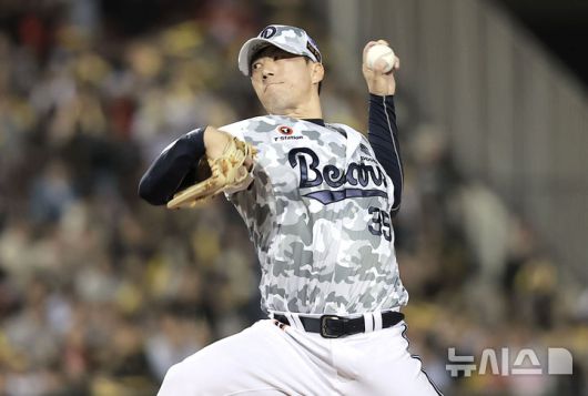 [서울=뉴시스] 정병혁 기자 = 5일 서울 송파구 잠실야구장에서 열린 2025 KBO리그 KIA 타이거즈와 두산 베어스의 경기, 두산 고효준이 역투하고 있다. 2025.06.05. jhope@newsis.com |