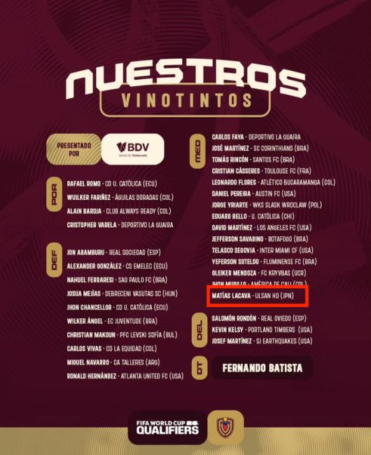그럼에도 불구하고 라카바는 이번 베네수엘라 대표팀에 이름을 올렸다. 그런데 베네수엘라 축구협회가 어이없는 실수를 저질렀다. 라카바의 소속팀인 울산을 일본 구단(JPN)으로 소개했다. 일부 팬들의 정정 요구에도 명단 게시물은 바뀌지 않았다.