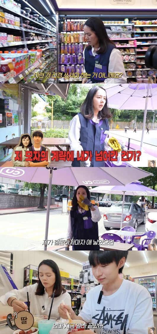 한편, 아르바이트를 마친 후 한가인은 조카와 함께 편의점에 인기있는 음식 조합으로 먹방을 즐겼다.