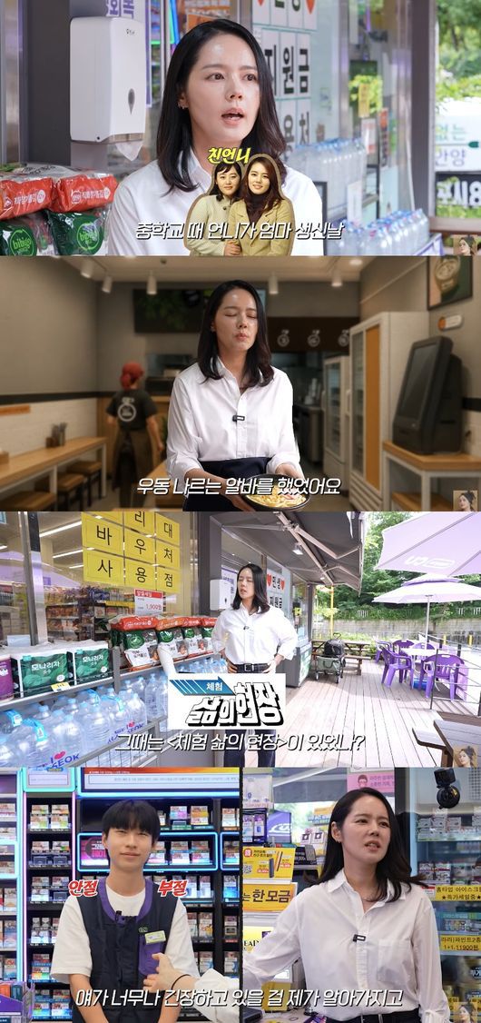 이날 편의점 앞에 등장한 한가인은 “저는 오늘 알바를 하러 왔다. 저는 어렸을 때 일찍 데뷔를 해서 알바를 많이 해보진 못했다”라고 말문을 열었다.