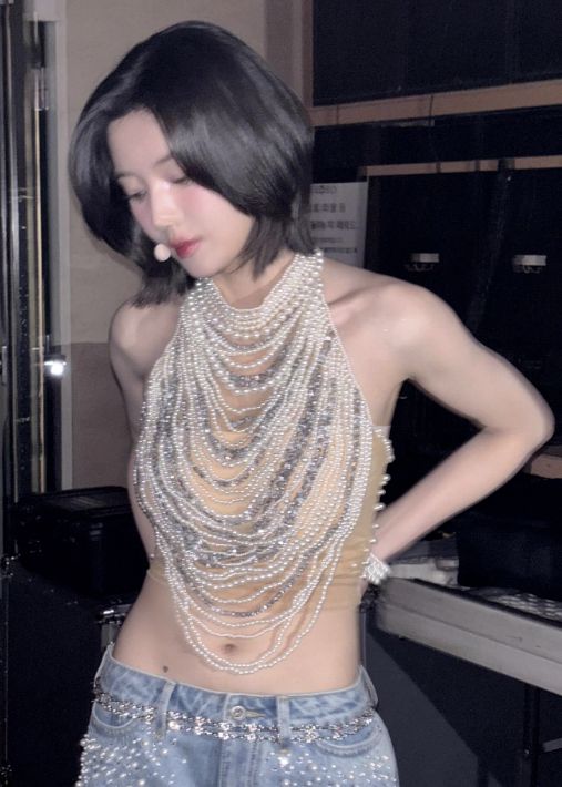 공개된 사진에는 비즈 장식이 달린 살색 브라톱을 입은 권은비의 모습이 담겼다. 착시를 일으키는 의상으로 섹시한 매력을 발산하고 있는 모습이다.