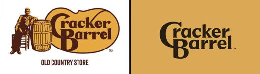 미국 프랜차이즈 크래커 배럴의 로고. 최근 회사는 기존 로고(왼쪽)를 새 로고(오른쪽)로 바꾼다고 했다. 비판이 거세자 다시 로고를 원상 복귀 시켰다./크래커 배럴