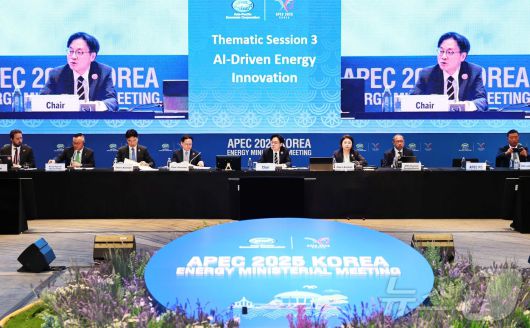 (서울=뉴스1) = 김정관 산업통상자원부 장관이 28일 부산 해운대구 파라다이스호텔에서 열린 'APEC 에너지장관회의'에서 발언을 하고 있다. (산업부 제공. 재판매 및 DB 금지) 2025.8.28/뉴스1juanito@news1.krCopyright ⓒ 뉴스1. All rights reserved. 무단 전재 및 재배포, AI학습 이용 금지.