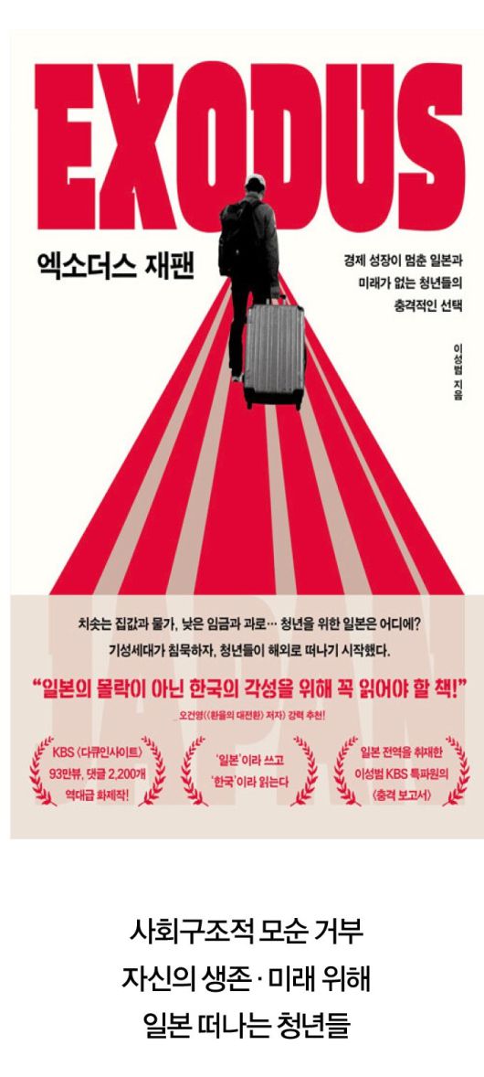 "일본 청년들은 더 이상 자신의 나라에서 미래를 계획하려 하지 않는다." 신간 「엑소더스 재팬」은 무너지고 있는 일본 청년들의 현실을 이야기한다. '모두가 중산층'을 선언했던 거품경제 시대와 달리 '격차사회'로 바뀐 지금의 일본을 꼬집으며, 청년들의 탈출기를 따라간다.