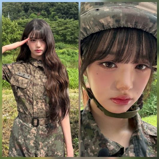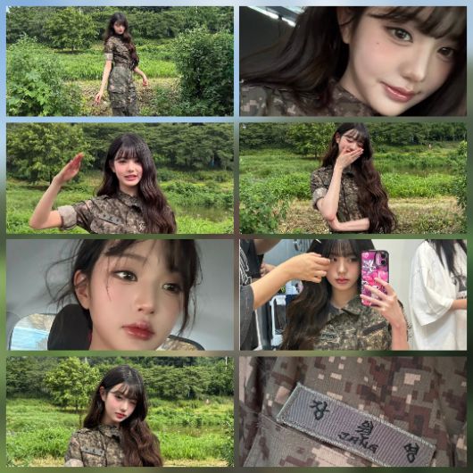 그룹 아이브 장원영(20)이 군복마저 완벽히 소화하며 화제를 모았다.