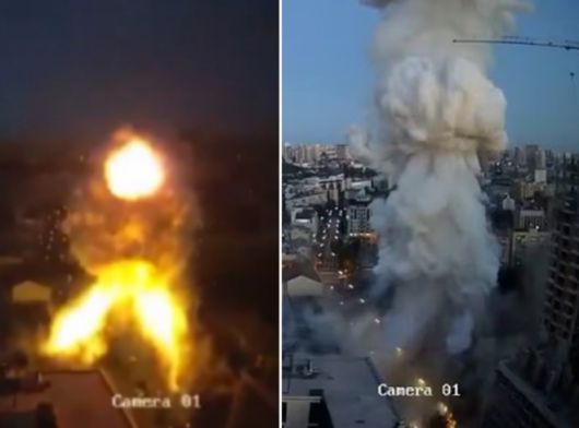 지난 27일~28일 우크라이나 키이우에 있는 유럽연합(EU) 대표부 건물과 영국문화원 건물이 있는 곳으로 러시아의 미사일이 연이어 두 번 떨어지는 모습. |