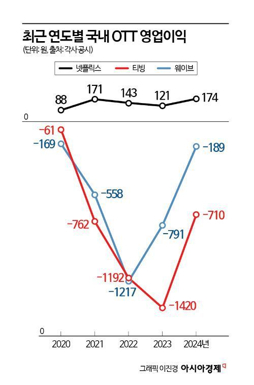 OTT 업계는 토종 OTT 경쟁력 강화를 위해선 규모의 경제가 필수라고 본다. 와이즈앱·리테일에 따르면 넷플릭스는 지난달 기준 사용자 점유율 41%를 차지했다. 반면 쿠팡플레이(21%), 티빙(17%), 웨이브(7%)가 뒤를 잇고 있다.