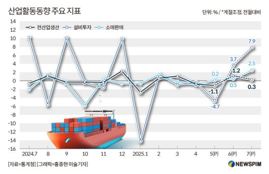29일 통계청이 발표한 '2025년 7월 산업활동동향'에 따르면, 지난달 전(全)산업 생산지수(계절조정·농림어업 제외)는 114.4(2020=100)로 전월보다 0.3% 증가했다.
