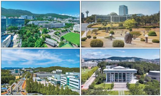 교육부가 내년 예산 중 이재명 정부의 교육 핵심 과제인 ‘서울대 10개 만들기’를 위해 거점국립대학에 지난해 대비 4777억원 증가한 8733억원을 집중적으로 투입한다. 사진은 국내 대표 거점국립대학인 부산대(왼쪽 위부터 시계방향), 경북대, 전남대, 충남대 전경 [각 대학 제공] |