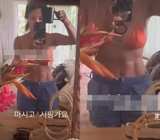 엄정화는 지난 28일 자신의 인스타그램 스토리에 "마시고 서핑 가요"라는 문구와 함께 하나의 영상을 게재했다.