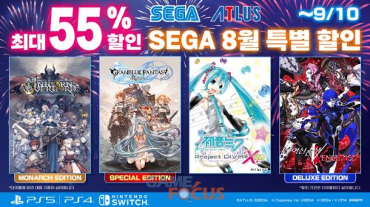 세가퍼블리싱코리아(대표 사이토 고)는 PlayStation™Store 및 닌텐도 e숍에서 판매 중인 일부 PlayStation®5/PlayStation®4/Nintendo Switch™용 타이틀을 기간 한정으로 특별 가격에 판매하는 'SEGA 8월 특별 할인'을 개최 중이다.