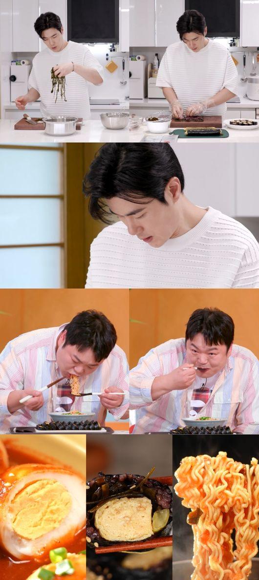 김강우가 선택한 분식은 ‘김밥, 떡볶이, 라면’이었다. 탄수화물 폭탄에 달고 맵고 짠 중독성 끝판왕인 대표 분식 메뉴들이었다. 과연 김강우가 이 분식들을 어떻게 만들지 이목이 집중된 가운데, 김강우는 메뉴마다 특별한 꿀팁들을 공개해 놀라움을 자아냈다. 특히 김강우 부부의 최애 김밥집이라는 서울 3대 김밥집으로 유명한 김밥집의 다시마김밥을 집에서 만들어 먹는다는 김강우의 레시피가 공개돼 눈길을 끌었다. 재료는 단 2개. 간단하면서도 김밥 하나에 꽉 찬 완벽한 밸런스를 만들어내는 김강우의 레시피에 현장 스태프들도 너도 나도 먹고 싶어 우르르 몰렸을 정도.