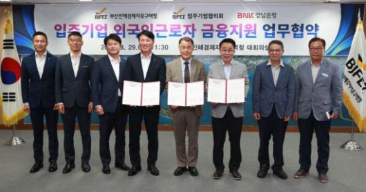 경자청은 29일 오전 11시 경자청 대회의실에서 입주기업협의회, BNK경남은행과 함께 외국인근로자의 정주환경 개선과 경제적 안정을 위한 '외국인근로자 대상 금융지원 업무협약'을 체결했다고 알렸다.