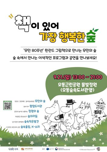특히 핀란드 대표 캐릭터 무민의 탄생 80주년을 기념하는 특별전 '핀란드 그림책전(展): 무민의 숲'이 물빛정원에 꾸려진다. 주한핀란드대사관과 국립어린이청소년도서관이 협력한 이 전시에서는 핀란드 대표 작가의 그림책과 삶의 철학을 만날 수 있다.