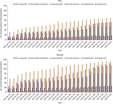 서울대병원 정신건강의학과 이유진 교수와 서울의대 예방의학교실 신애선 교수 공동 연구팀(공동 제1저자: 서울시보라매병원 신지윤 교수, 서울의대 전소연 연구원)은 국민건강보험 데이터를 활용해 2010년부터 2022년까지 국내 18세 이상 불면증 환자 813만 6,437명(여성 60.4%)의 수면제 처방 추세를 분석한 연구 결과를 29일 발표했다.
