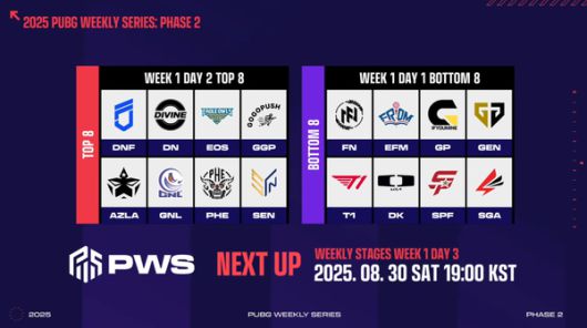 한편 'PWS: 페이즈2' 1주 3일차 경기는 30일 오후 7시에 열린다. 2일차 경기의 상위 8개 팀과 1일차 경기의 하위 8개 팀이 승부를 펼치게 된다.