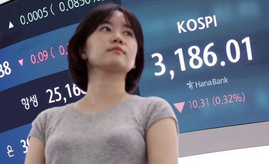 29일 코스피는 전 거래일보다 10.31포인트(0.32%) 내린 3186.01로 마감했다. 지수는 전장보다 12.48포인트(0.39%) 오른 3208.80으로 출발, 3200선 회복 기대감을 키웠지만 이내 하락으로 반전했다. 지난 25일 이후 나흘째 3100선에 머물게 됐다.