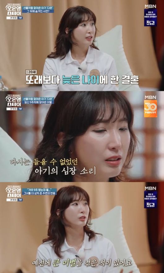 그는 "아들과 남편, 양가 모두 기대했는데 말을 할 수가 없더라. 수술을 하고 일을 하면서 가만히 울면서 지냈다. 누구한테도 표현할 수 없었다"고 아픔을 드러냈다.