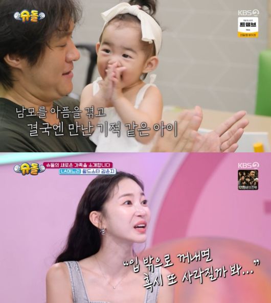 이후 시험관 3회를 통해 결혼 3년 만에 딸을 얻게 됐다. 김윤지는 "나는 아직도 그렇게 생각한다. 봄봄이가 동생 보내준 거라고"라며 가슴에 묻은 첫 아이에 대한 애틋함을 전했다.