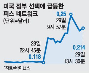 29일 코인마켓캡에 따르면 피스 네트워크는 이날 오전 한때 0.25달러까지 오르면서 전날 대비 112.58% 급등했다. 이날 오후 들어서는 고점 대비 하락해 0.2달러 선에 거래되고 있다.
