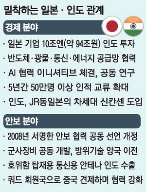 요미우리신문·니혼게이자이신문(닛케이) 등에 따르면 이날 일본 도쿄 총리공관에서 일본·인도 양국이 정상회담을 열고 경제·안보협력 내용이 담긴 공동 문건을 발표했다.
