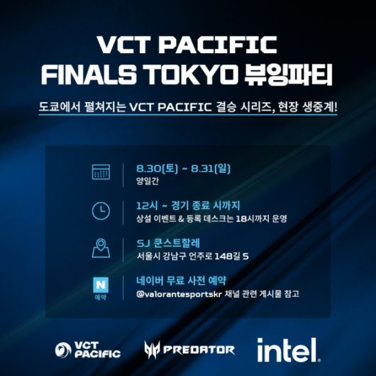 에이서의 고성능 게이밍 브랜드인 프레데터는 라이엇 게임즈의 글로벌 e스포츠 리그 VCT 퍼시픽 공식 파트너로, 대회 현장에 사용되는 게이밍 PC와 중계용 노트북을 독점 지원한다. 이번 뷰잉파티에서는 도쿄에서 열리는 VCT 퍼시픽 스테이지 2 결승 시리즈가 생중계되며, 현장을 찾은 팬들이 함께 응원하고 소통할 수 있는 다양한 프로그램이 마련된다. 뷰잉파티는 매일 오후 12시부터 경기 종료 시까지 운영되며, 상설 이벤트와 등록 데스크는 오후 6시까지 운영된다.