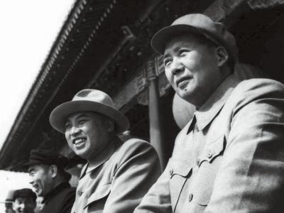 1954년 10월 1일 열병식을 함께 지켜보는 김일성 전 북한 주석(오른쪽 둘째)과 마오쩌둥 전 중국 주석(오른쪽). 경화시보 캡처·연합뉴스 |