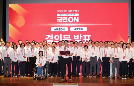 국민의힘은 이날 연찬회를 통해 민생 대응과 정책 역량 강화 방안도 제시했다. 당은 △미래 첨단산업 육성 △청년 희망 △정치 혁신 △경제 활성화 △안전 사회 △취약계층 돌봄 △민생경제 회복 등 7개 분야 100대 입법과제를 선정하고, 각 분야별로 인공지능인재 육성 및 활용에 관한 특별법 △포이즌필·차등의결권·배임죄 완화 등이 담긴 상법 △재건축 초과이익 환수제 폐지법 △감형·복권 대상에서 대통령과 공범 관계에 있는 자를 제외하는 사면법 등을 신속히 추진하겠다는 계획이다.