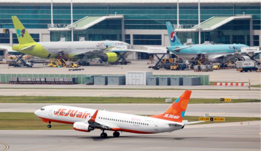 인천국제공항에 계류 중인 국내 LCC와 FSC 항공사 여객기. 연합뉴스