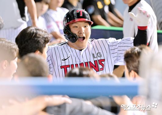 문보경은 정현우의 초구 145km/h짜리 직구를 공략했다. 스트라이크 존 가운데로 몰린 실투를 놓치지 않고 받아쳐 좌중간을 깨끗하게 가르는 타구를 날려 보냈다. 1루 주자 신민재는 여유 있게 홈 플레이트를 밟았다.