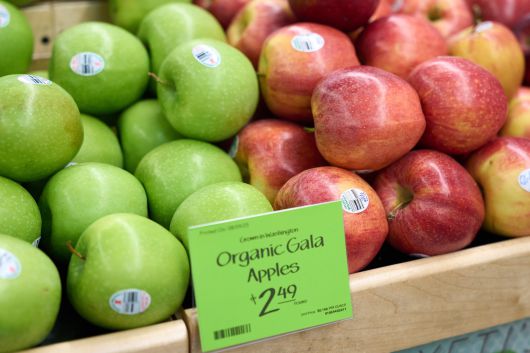 미국 캘리포니아주 로스앤젤레스의 한 식품 매장에 사과가 진열된 모습. /연합뉴스 |