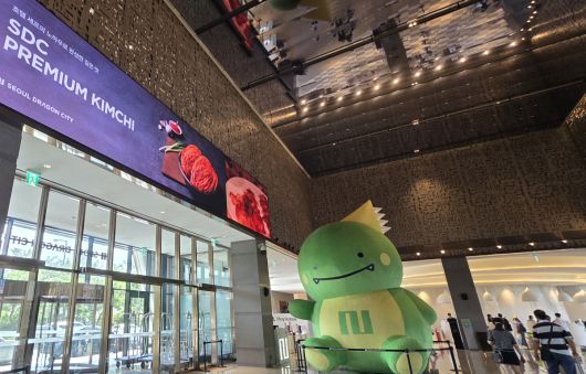 그랜드 머큐어와 노보텔, 노보텔 스위트, 이비스 등 4개 브랜드 호텔이 한 자리에 있는 서울 용산구 드래곤시티호텔. 이 곳 1층 로비에 들어서면 24시간 언제나 8미터(m) 높이의 초대형 연두색 봉제인형을 만날 수 있다. 눈사람처럼 크고 둥근 머리와 몸통을 보유한 이 캐릭터는 방문객들에게 인사를 하는 듯 한 쪽 팔을 내밀고 철푸덕 앉아 존재감을 과시하고 있다. 캐릭터의 이름은 '베이비드라코', 용이 되고 싶은 요정(5살)’을 콘셉트로 드래곤시티호텔이 자체 제작한 IP(지식재산권)다.