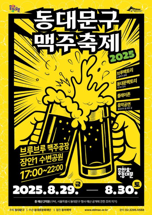 서울 한복판 장안1수변공원에서 열리는 시원한 야외 맥주축제 '2025 동대문구 맥주축제'가 30일까지 무료로 열린다. 동대문구와 동대문문화재단이 주최하는 도심형 복합문화축제로, 수제맥주와 음악공연, 먹거리, 체험이 어우러진 특별한 여름밤을 시민들에게 선사한다.