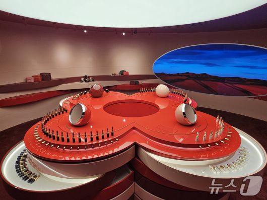 라보떼 루이비통 론칭 기념 팝업 스토어. 화장대 형태의 메이크업 트렁크. 가격은 5억 8000만원이 넘는다.ⓒ 뉴스1/김진희 기자. |