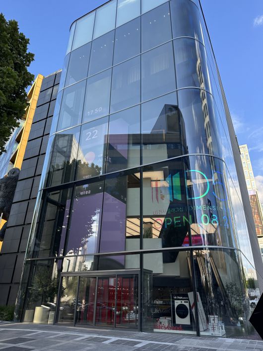 서울 강남구 도산대로에 위치한 LG전자 플래그십 D5 외관 전경. LG전자는 D5를 프리미엄 고객부터 영 타깃, 글로벌 고객까지 공략하는 거점으로 활용할 방침이다. 이화연 기자 |